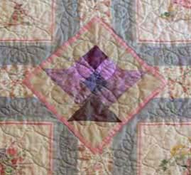 | The fabrics and pattern of this quilt are typical of the last half of the 1800s.