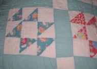 From talking with my mother-in-law we know the nine patch quilt is at least 45 years old and the wool quilts are much older.  Her mother, Katherine Kukas Fox came to Lincoln, Nebraska, around the turn of the century from Russia (Germans from Russia).  She began quilting when my mother-in-law was sixteen, which was in 1935, and she quilted until around 1960. She passed away in 1977 at 92 years of age.