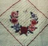 Not all appliqué album quilts were signed and some were just signed with a few names. Many had names on most or all of the blocks. Often all the names, dates and verses were written by one woman who was talented at calligraphy. Embroidery or fine ink sketches were sometimes used to add detail to the blocks. These quilts received little wear and some had thin or no batting. Others were not backed at all. It is obvious they were made to be used only as decorative or guest bed quilts.