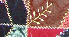 Crazy quilts were more show pieces than functional and were often made as smaller unquilted "lap robes" that were used to decorate the parlor. They were fitting showpieces for the lavish interior decoration of the day. These crazy quilts were made using velvets, silks and brocades, cut and pieced in random shapes. What a perfect way for women to show off their needlework skills! Using silk thread, women placed lovely decorative stitches on each seam. Intriguing names like feather, herringbone, fly and chain describe just a few of the intricate stitches. The imagination and skill of the seamstress was the limit.