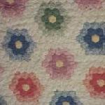 We find that quilts were a natural part of the need to go back to basics during the depression era. Yet is was a time of innovation as well. Family and community were less likely to be the source for quilt patterns as women turned to the current magazines for inspiration. Traditional patterns were modernized and fresh new possibilities were introduced including lovely natural floral applique' designs and scenes made of tiny fabric squares based on cross stitch. The depression era was enlivened by women designing and constructing quilts.